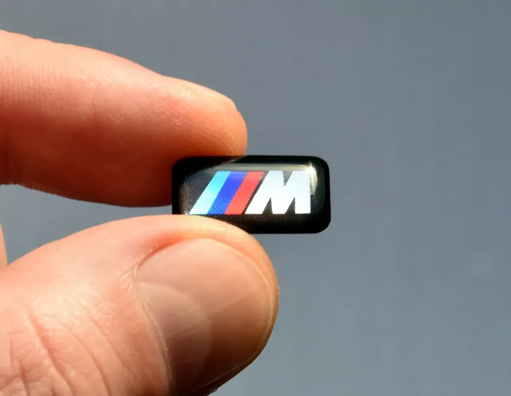 Naklejka ma oryginalny rozmiar pasujący do wgłębienia w felgach lub kierownicy serii M.