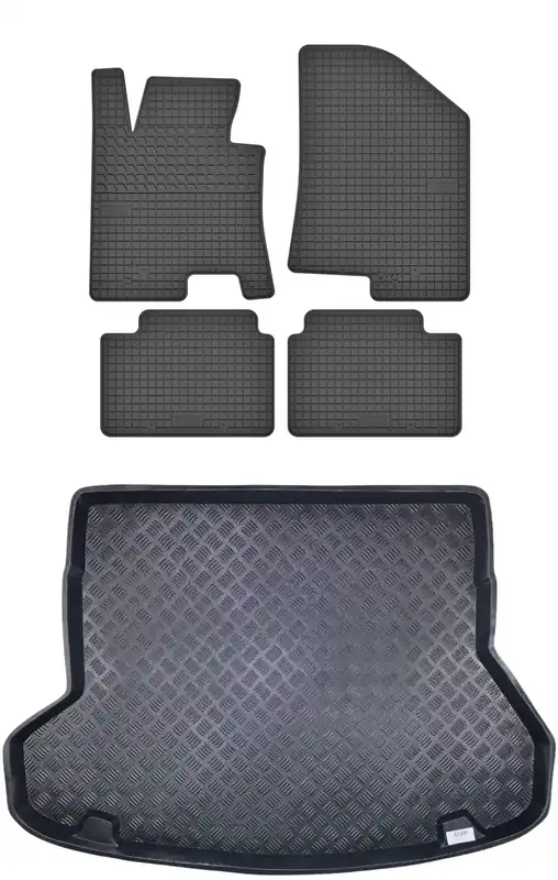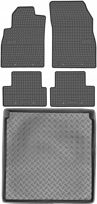 Ten zestaw to połączenie bardzo atrakcyjnej ceny oraz dużej wytrzymałości produktu. Dywaniki wykonane są gumy, natomiast mata do bagażnika z tworzywa sztucznego LDPE (elastyczny plastik, można zginać i zwijać w rulon)
