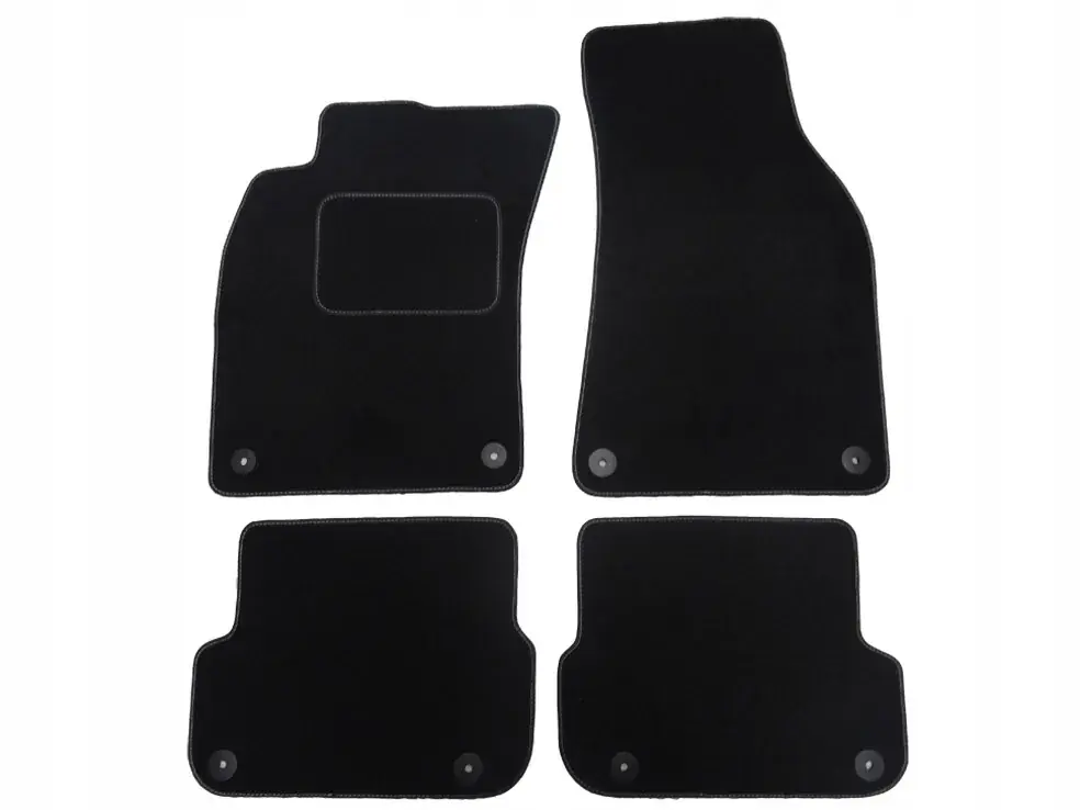 Brzegi dywaników zostały obszyte czarną lamówką ze skóry syntetycznej. Odcień wykładziny, lamówka i nić za pomocą której została przeszyta zostały dobrane w taki sposób, aby komponowały się w jedną, spójną całość.