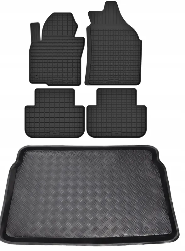 Ten zestaw to połączenie bardzo atrakcyjnej ceny, oraz dużej wytrzymałości produktu. Dywaniki wykonane są gumy, natomiast mata do bagażnika z tworzywa sztucznego LDPE (elastyczny plastik, można zginać i zwijać w rulon)