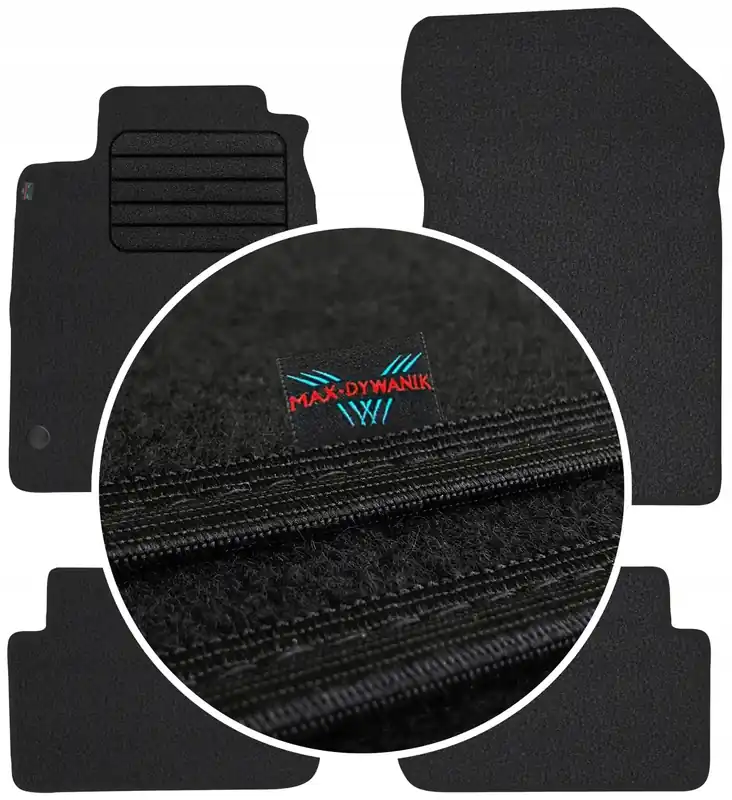 Wyjątkowy kunszt tych dywanów polega na niekonwencjonalnym zastosowaniu motywu włókna węglowego na lamówce i precyzyjnym hafcie wykonanym przy użyciu nowoczesnych maszyn CNC. Dzięki technologii wtłaczania cieplnego (MPT™) osiągnęliśmy bardzo wyraźny efekt wtopienia materiału, który doskonale odwzorowuje włókno węglowe. Co pozwoliło na zaimplementowanie wysokiej klasy technologii haftu komputerowego.