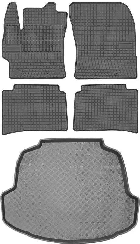 Zestaw stworzony przez firmę MAX-DYWANIK® składający się z dywaników gumowych polskiej firmy FROGUMwraz z matą do bagażnika wykonaną z tworzywa polskiej firmy ARISTAR.