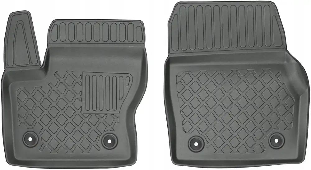 Oferowane dywaniki zostały precyzyjnie zaprojektowane do kształtu płyty podłogowej biorąc pod uwagę nie tylko markę / model samochodu, ale także rocznik oraz wersję nadwozia, dzięki czemu pasują idealnie. Dywaniki wytwarzane są z najwyższej jakości, trwałego i wzmocnionego tworzywa sztucznego, niezawierającego substancji szkodliwych dla zdrowia, co zapewnia bezpieczeństwo użytkowania. Wysoki kołnierz(brzeg) ochronny dookoła dywaników oraz stabilność kształtu skutecznie zatrzymuje wodę i brud, zabezpieczając oryginalną tapicerkę samochodową przed zabrudzeniem. Bezpieczne w użytkowaniu, dzięki praktycznemu i łatwemu w użyciu systemowi mocowania do podłogi samochodu. System mocowania dostosowany jest do marki / modelu samochodu i zabezpiecza dywanik przed przesuwaniem podczas jazdy. Matowe wykończenie oraz dopracowany wzór na powierzchni zapewniają estetyczny wygląd dywaników w samochodzie.