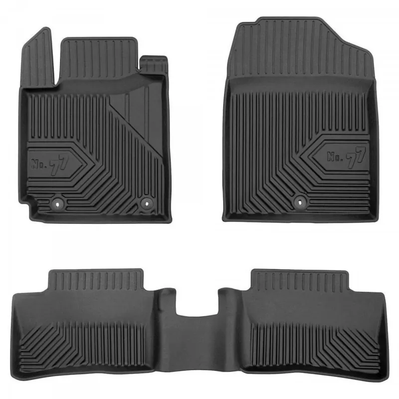 Dywaniki pasują do wersji hatchback i kombi. Oryginalne, wysokiej jakości dywaniki samochodowe firmy FROGUM z nowej serii No. 77. Wykonane z elastomeru plastycznego (TPE) w kolorze czarnym. Dzięki zastosowaniu najwyższej jakości tworzywa charakteryzują się niespotykaną odpornością na wycieranie. Wysoki, trójwymiarowy brzeg ochronny zabezpiecza podłogę samochodu, powierzchnie boczną tapicerki oraz podstopnicę łącznie z wykładziną pod pedałami.
