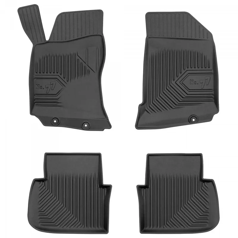 Oryginalne, wysokiej jakości dywaniki samochodowe firmy FROGUM z nowej serii No. 77. Wykonane z elastomeru plastycznego (TPE) w kolorze czarnym. Dzięki zastosowaniu najwyższej jakości tworzywa charakteryzują się niespotykaną odpornością na wycieranie. Wysoki, trójwymiarowy brzeg ochronny zabezpiecza podłogę samochodu, powierzchnie boczną tapicerki oraz podstopnicę łącznie z wykładziną pod pedałami. Zalety dywaników z serii No.