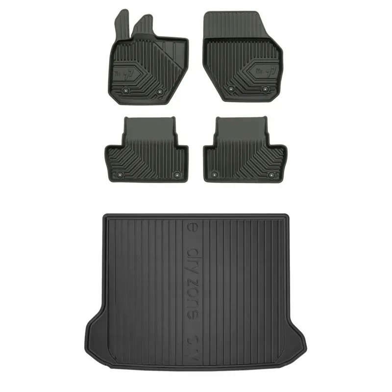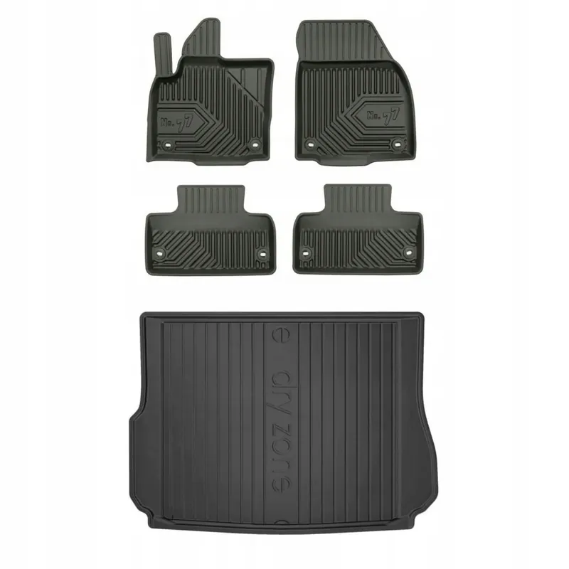 Zestaw zawiera: dopasowaną matę do bagażika z tworzywa LDPE (elastyczy plastik), oraz komplet dywników korytkowych, dobranych do smochodu spośród gamy uniwersalnych kształtów.