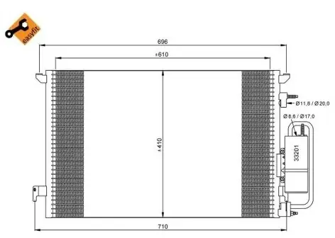 410 Wysokość [mm]: 610 Czynnik chłodniczy: R 134a Dolot – [mm]: 11,8 Wylot – [mm]: 8,6 Jakość/Klasa: