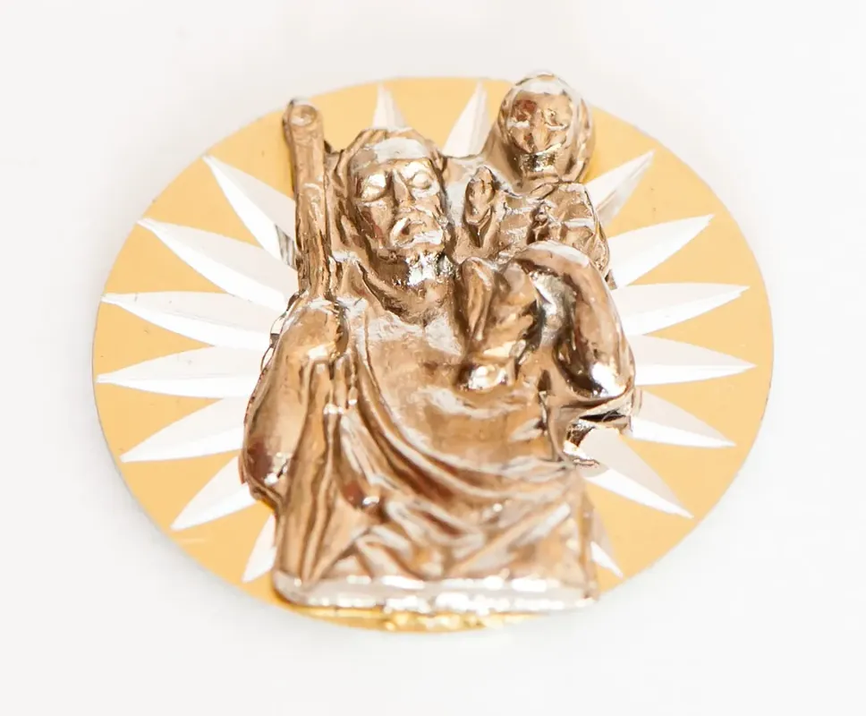 3 cm x 3 cm -metalowa plakietka (emblemat) do samochodu z wizerunkiem św. Krzysztofa