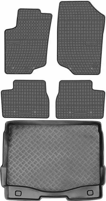 Oferowane dywaniki zostały precyzyjnie zaprojektowane do kształtu płyty podłogowej biorąc pod uwagę nie tylko markę / model samochodu, ale także rocznik oraz w uzasadnionych przypadkach wersję nadwozia. Dywaniki wytwarzane są z najwyższej jakości, trwałej i wzmocnionej mieszanki gumowej niezawierającej substancji szkodliwych dla zdrowia, co zapewnia bezpieczeństwo użytkowania. Estetyczny kołnierz (brzeg) ochronny dookoła dywaników skutecznie zatrzymuje wodę i brud, zabezpieczając oryginalną tapicerkę samochodową przed zabrudzeniem. Dywaniki od spodu posiadają zaprojektowane malutkie kolce, które w dodatkowy sposób chronią je przed przesuwaniem. Dywanik kierowcy został dodatkowo wzmocniony w miejscu najbardziej newralgicznym (miejsce styku pięty z powierzchnią dywanika) tak, aby zabezpieczyć dywanik przed przetarciem. Nowoczesny design oraz staranne wykończenie sprawiają, że dywaniki prezentują się bardzo elegancko we wnętrzu samochodu.