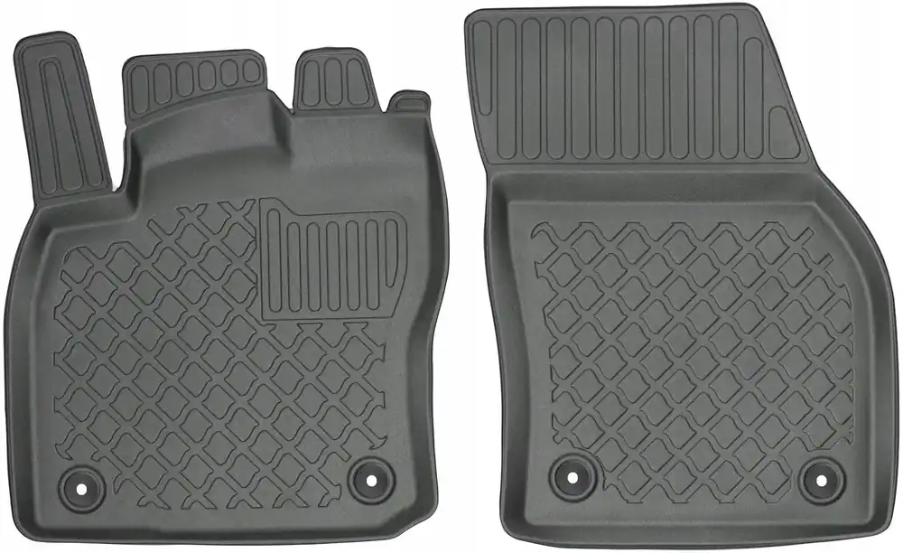 Oferowane dywaniki zostały precyzyjnie zaprojektowane do kształtu płyty podłogowej biorąc pod uwagę nie tylko markę / model samochodu, ale także rocznik oraz wersję nadwozia, dzięki czemu pasują idealnie. Dywaniki wytwarzane są z najwyższej jakości, trwałego i wzmocnionego tworzywa sztucznego, niezawierającego substancji szkodliwych dla zdrowia, co zapewnia bezpieczeństwo użytkowania. Wysoki kołnierz(brzeg) ochronny dookoła dywaników oraz stabilność kształtu skutecznie zatrzymuje wodę i brud, zabezpieczając oryginalną tapicerkę samochodową przed zabrudzeniem. Bezpieczne w użytkowaniu, dzięki praktycznemu i łatwemu w użyciu systemowi mocowania do podłogi samochodu. System mocowania dostosowany jest do marki / modelu samochodu i zabezpiecza dywanik przed przesuwaniem podczas jazdy. Matowe wykończenie oraz dopracowany wzór na powierzchni zapewniają estetyczny wygląd dywaników w samochodzie.