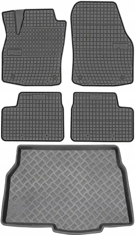 Zestaw stworzony przez firmę MAX-DYWANIK® składający się z dywaników gumowych czeskiej firmy Gumárny Zubří oraz maty do bagażnika wykonanej z tworzywa polskiej firmy MIX-PLAST.