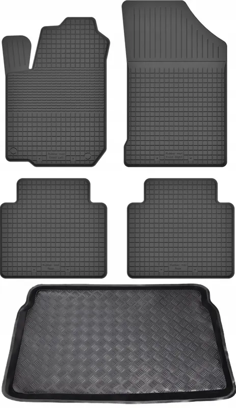 Ten zestaw to połączenie bardzo atrakcyjnej ceny, oraz dużej wytrzymałości produktu. Dywaniki wykonane są gumy, natomiast mata do bagażnika z tworzywa sztucznego LDPE (elastyczny plastik, można zginać i zwijać w rulon)