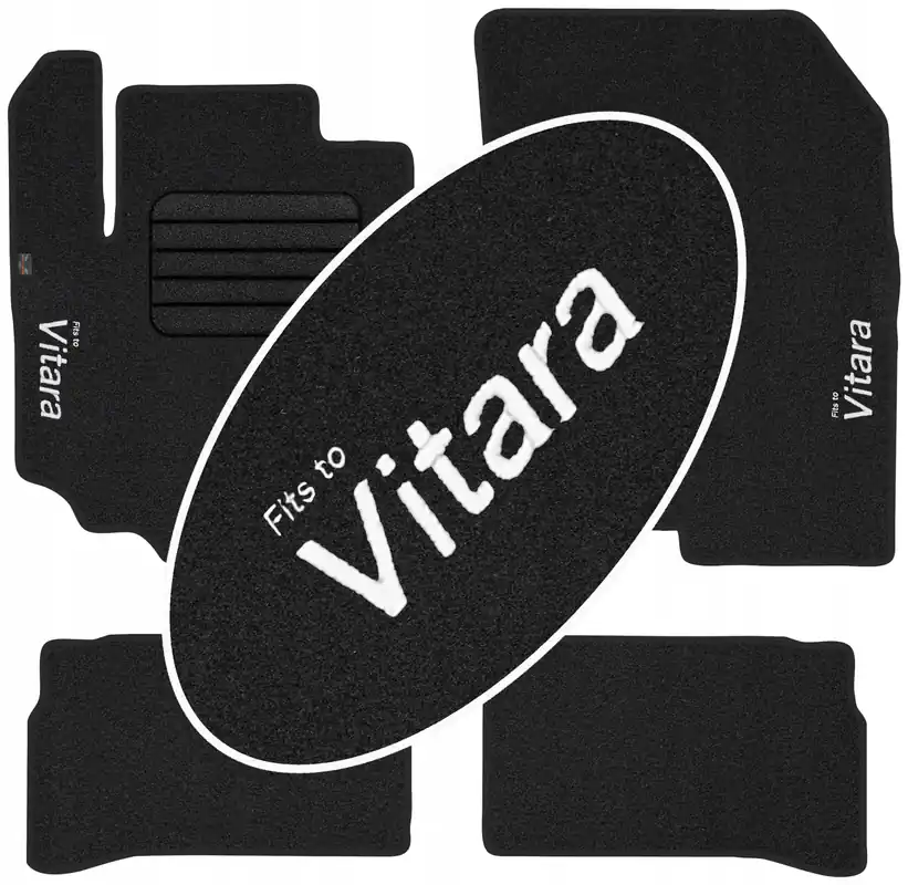 Na przednich dywanikach wykonywany jest napis informacyjny metodą haftowania bezpośredniego na dywanikach o treści ” Vitara ” . Dzięki nowoczesnemu zapleczu produkcyjnemu oraz korzystaniem z wysokiej jakości materiałów i nici, haft na dywanikach jest wytrzymały i estetyczny co w dodatkowy sposób wpływa korzystnie na prezentację dywaników we wnętrzu samochodu. Treść napisu na dywanikach jest zgodna ze zdjęciem głównym (w zależności jest to model lub marka samochodu) a nad tym napisem delikatną czcionką naniesiony jest napis „Fits to”, który informuje o przeznaczeniu dywaników.