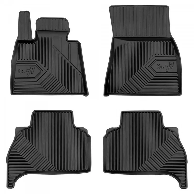 Wysokiej jakości mata i dywaniki samochodowe firmy FROGUM Zalety produktów z zestawu: idealnie dopasowane do podłogi samochodu odporne na odkształcenia i uszkodzenia ekologiczne i bezpieczne dla zdrowia nie wydzielają nieprzyjemnego zapachu zachowują swoją elastyczność przy zmianach temperatury posiadają wysoki rant do 3 cm, który zapobiega wylewaniu lub wysypywaniu się brudu łatwe do czyszczenia dywaniki zawierają stopery pod oryginalne mocowania mata jest przygotowana pod fabryczne haki w bagażniku Cechy dywaników z serii No. 77: UltraFlex Dual Polymer Technology – trwałość na lata To unikalna kompozycja materiałów o bardzo wysokiej wytrzymałości na ścieranie nawet w ekstremalnych warunkach. Zachowuje swoją elastyczność i sprężystość -50 C do +110 C. Nowoczesne dywaniki samochodowe No.